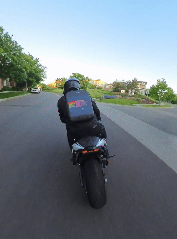 The Bikerβs LED Display Backpack is made from waterproof materials with water-resistant zippers to keep your gear dry, even in heavy rain or wet conditions.